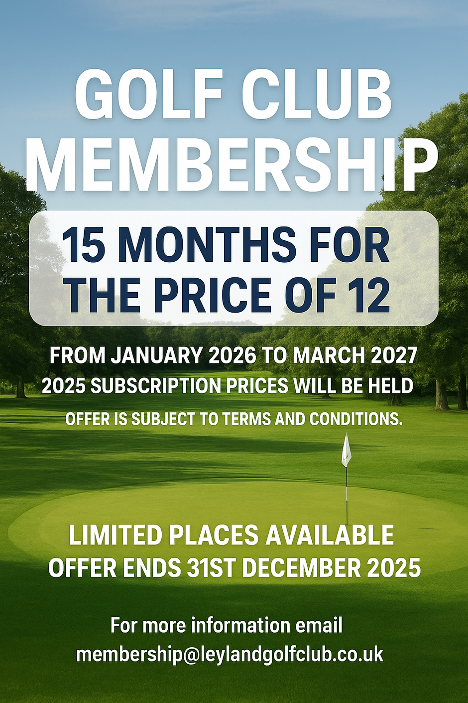 Leyland Golf Club is an 18 hole parkland course, 6298 yards long, par 70. It possesses a large practice area available to members and visitors, with practice bunker, chipping facilities and a 9 hole putting green. The course is professionally landscaped and has many distinctive features, including several water hazards. It is close to Preston and within easy access of the M6 and M61 motorways.